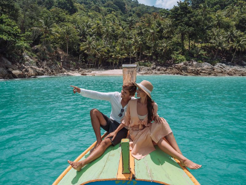 Begeben Sie sich an Bord eines traditionellen thailändischen Langbootes auf eine zeitlose Reise zu einem der faszinierendsten Strände der Welt.