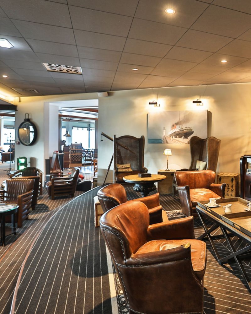 Whether sipping cocktails on the upper deck, enjoying a Viennese hot chocolate in a cosy alcove, or indulging in champagne by the fireplace, each setting offers a unique experience.