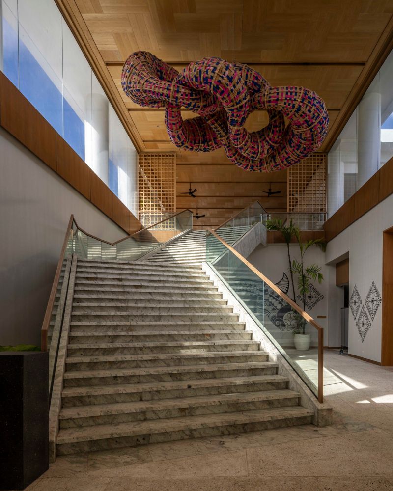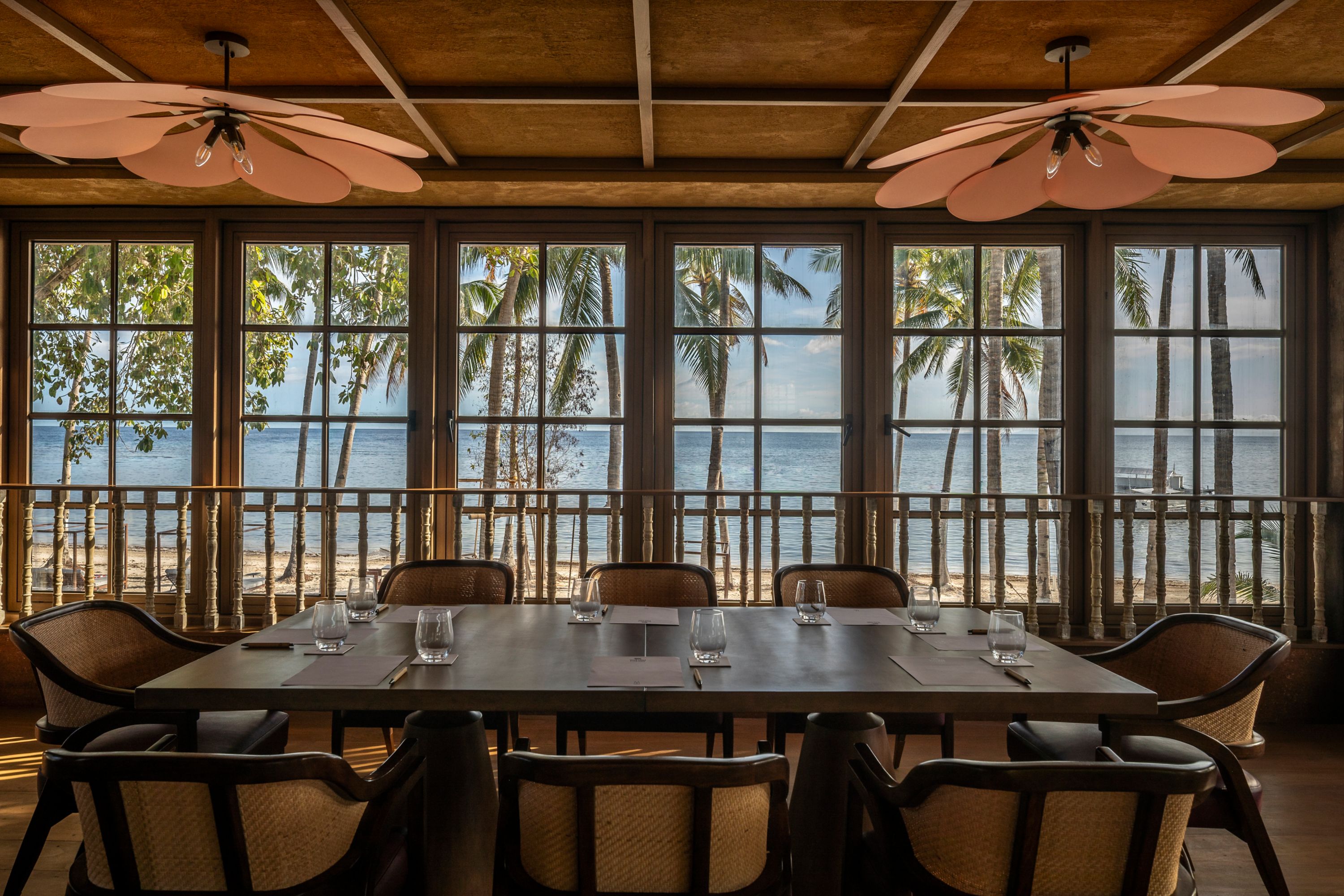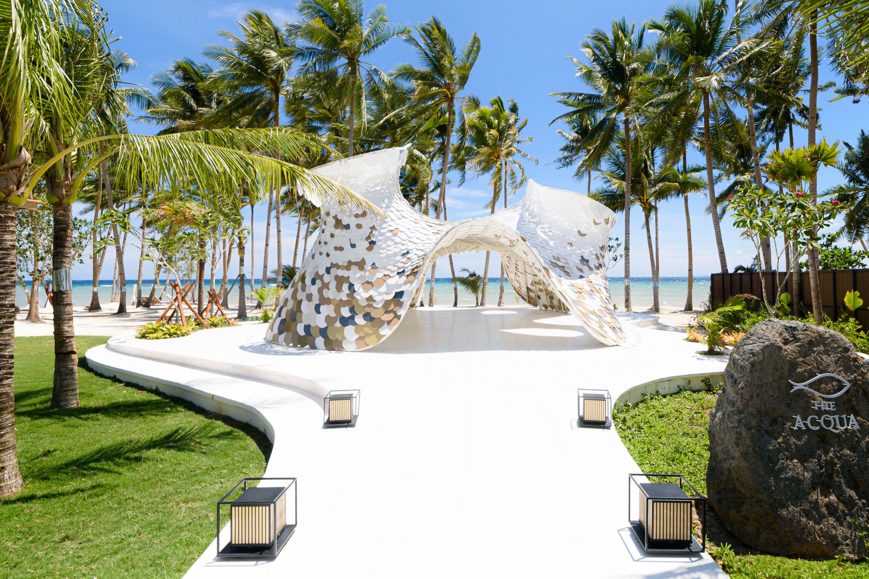 Panglao's architectural masterpiece. Inspired by water shells, the pavilion’s amoebic form is clad in uniquely shaped, shell-like shingles that open to welcome cooling sea breezes. In coral white with sand-toned flecks, it embodies the spirit of the shore.