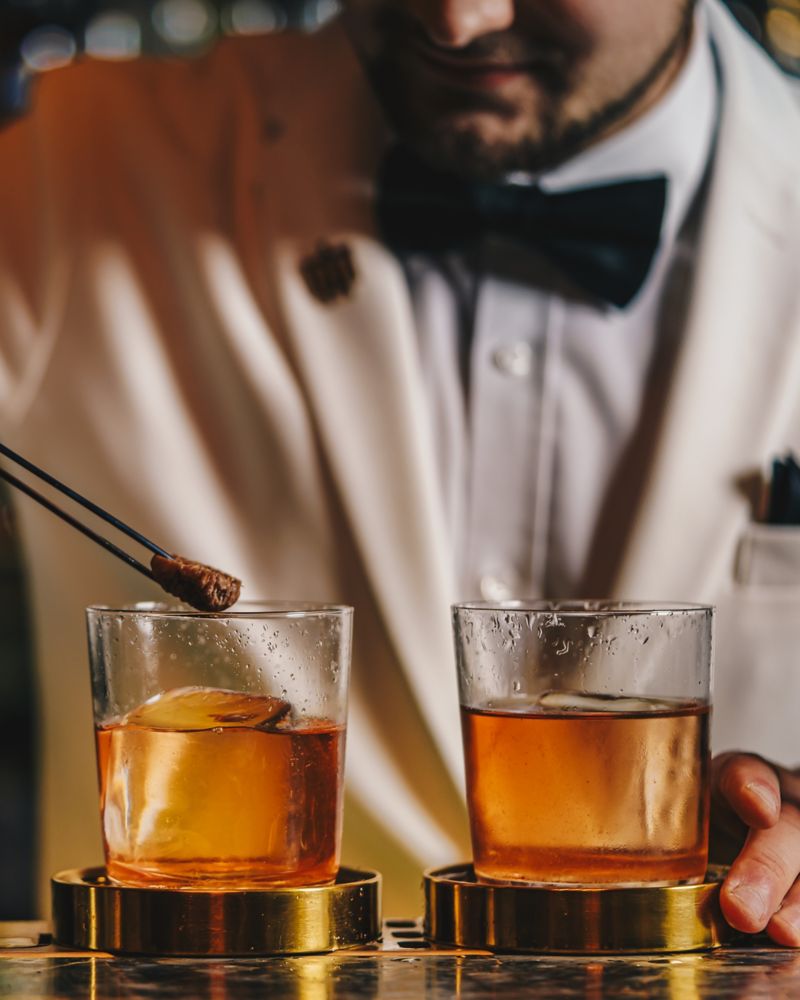 Picture the moment a bar comes alive: the shimmer of glass, the scent of fresh herbs and citrus, the quiet drama of ice meeting metal. The mixologist, focused and precise, bringing each creation to life. Smoke, sparkle and subtle theatre stimulate the senses, immersing you in a world of imagination and storytelling.
