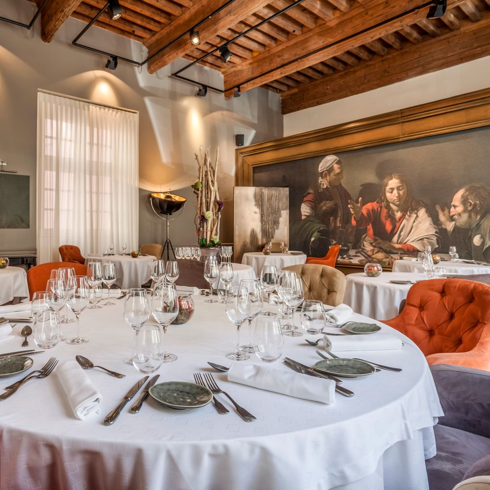 Disfrute de una cena con elegancia histórica con una obra maestra de Caravaggio