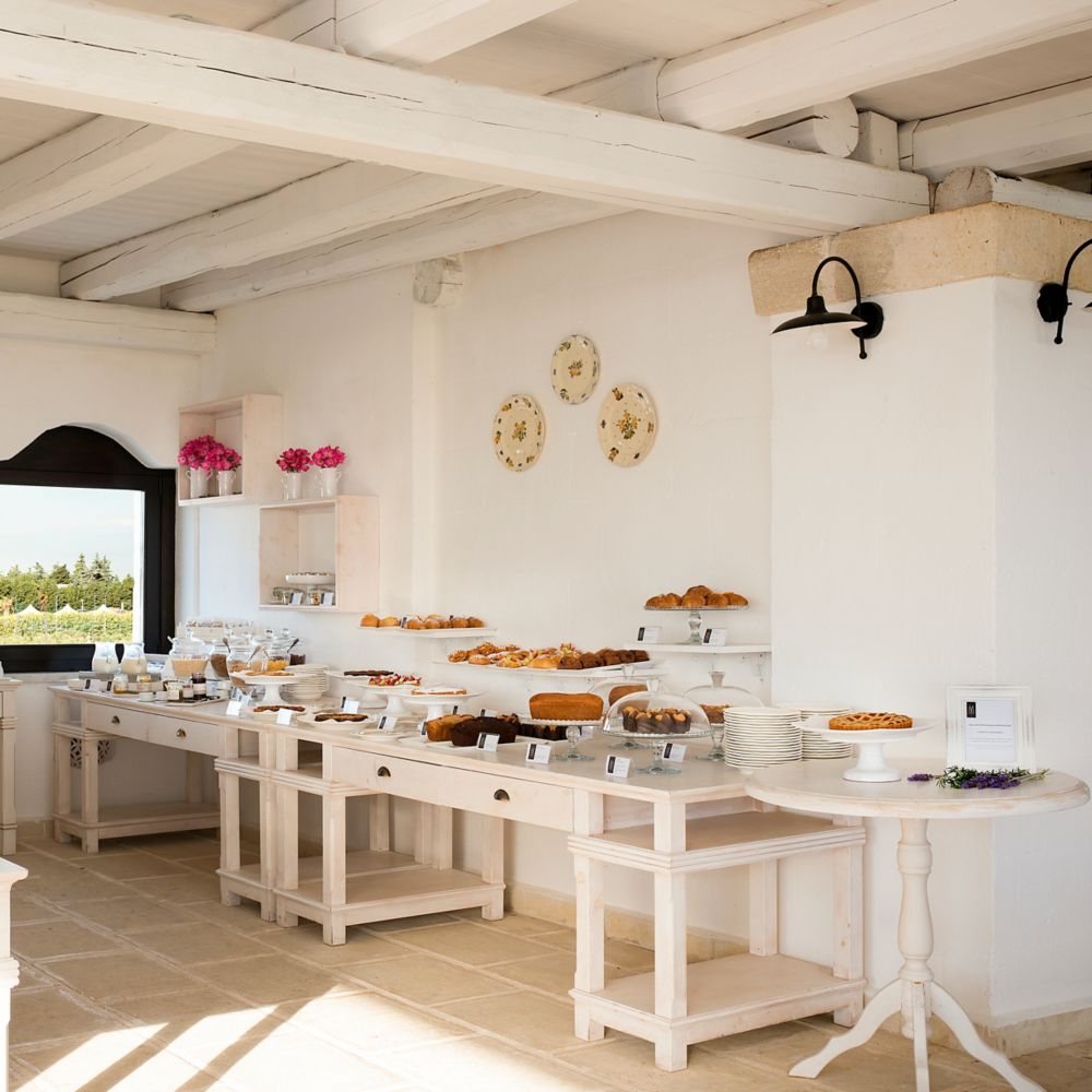 Nuestro bufé a la carta ofrece una suntuosa variedad de productos locales y de temporada. Comience su día con pan recién horneado y pasteles, junto con una selección de quesos y fiambres. Disfrute de frutas de temporada, jugos frescos y café o té aromáticos. Los platos exclusivos de nuestro chef, incluidos el Bocconotto y el Il Cuore di Puglia, están elaborados con pasión y estilo local, lo que garantiza un comienzo memorable de su día.
