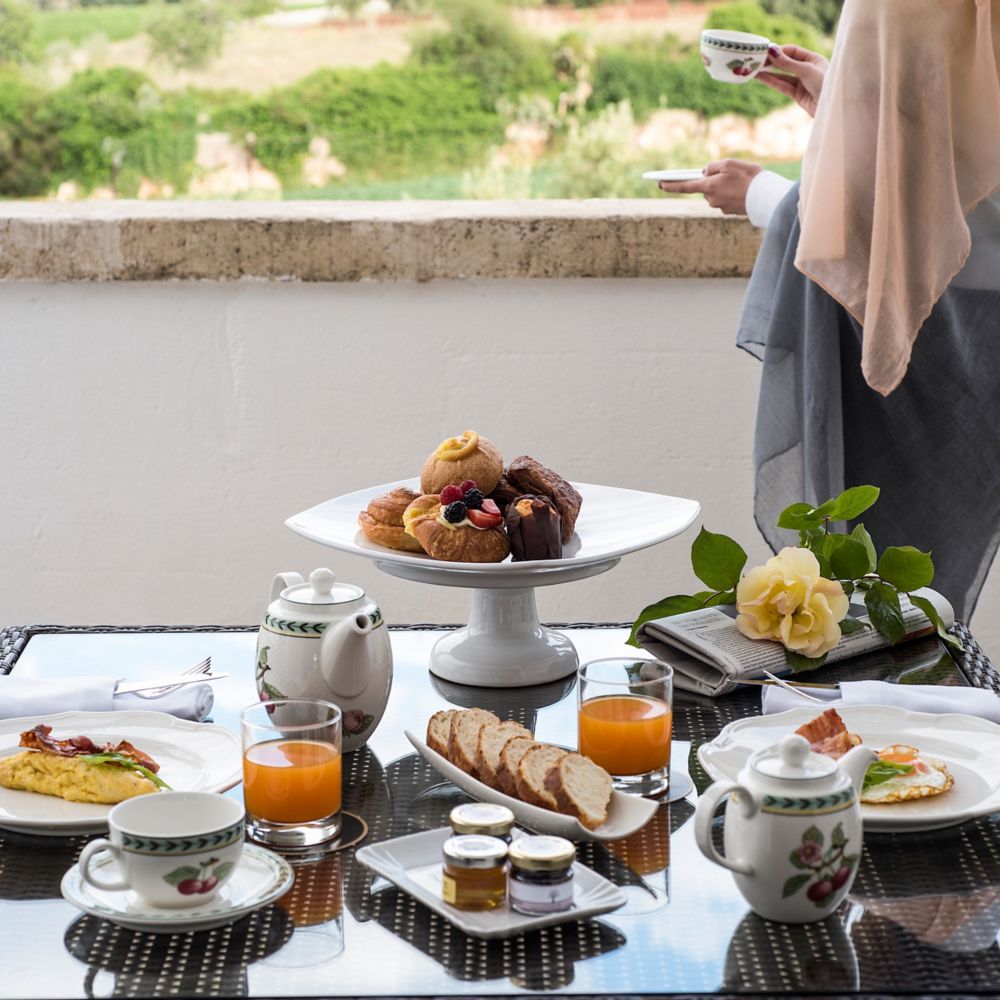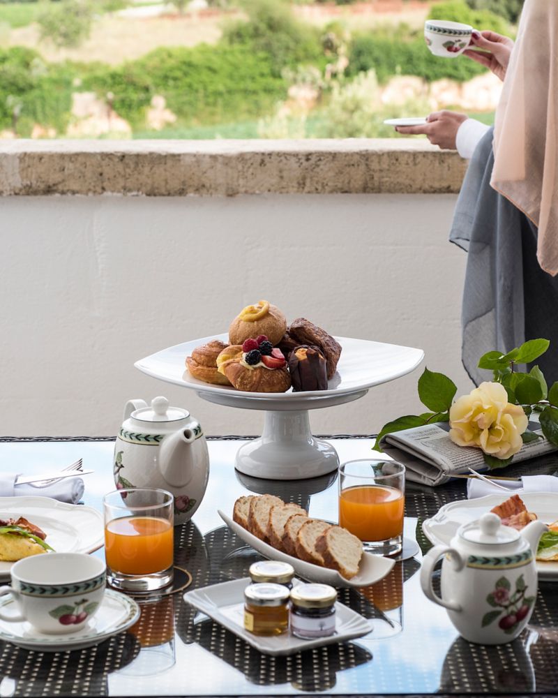 Disfrute del lujo del desayuno en la cama con nuestro servicio de comidas a la habitación. Deléitese con una delicada selección de delicias apulianas, que incluyen pasteles frescos, quesos locales y frutas de temporada. Complemente su comida con una taza de nuestro té especial de romero y disfrute de la tranquilidad de su terraza o patio privados, con vista a la tranquila campiña o al resplandeciente mar Adriático.