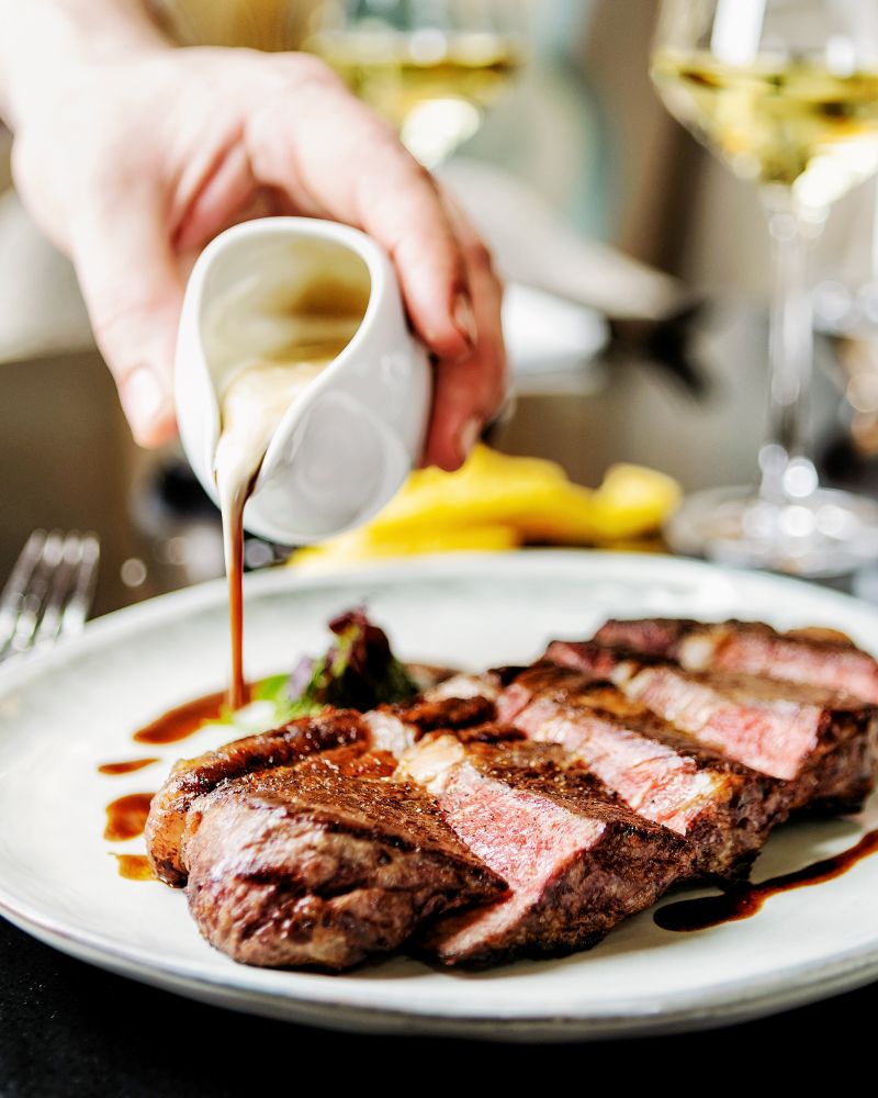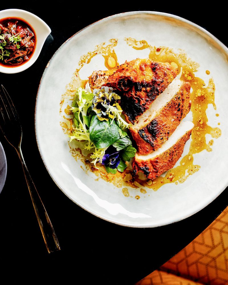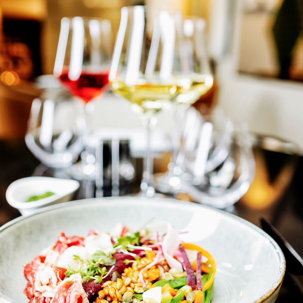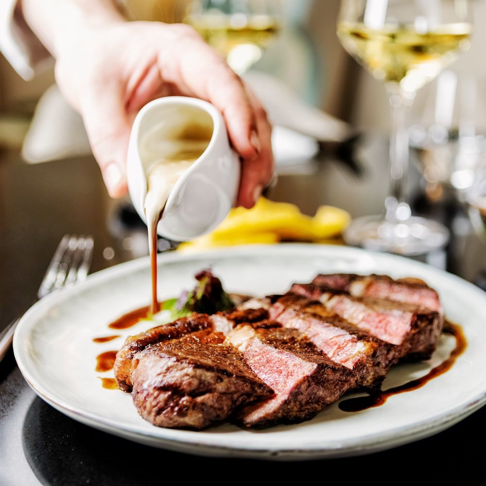 Laissez-vous tenter par notre plat signature : une version raffinée du coq au vin, soigneusement préparée avec des ingrédients locaux et une touche de finesse à la française.