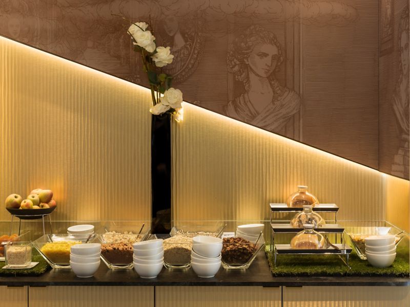 Aprecie a tranquilidade da manhã na privacidade do seu quarto. Nosso serviço de café da manhã no quarto traz o deleite da refeição à sua porta. Saboreie uma variedade de opções de café da manhã quentes e frias enquanto admira as vistas deslumbrantes de Versalhes. Desfrute de café fresco, bolinhos quentinhos e frutas da estação, tudo com atendimento impecável.