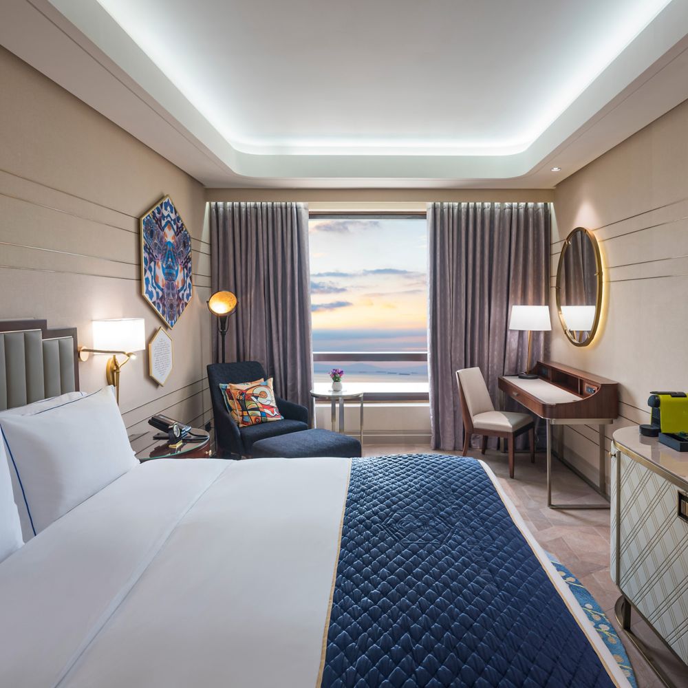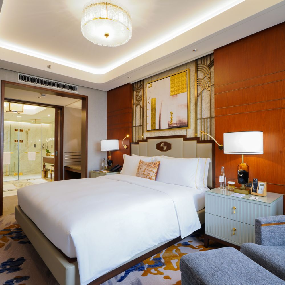 Nossa sofisticada suíte para noivas oferece interiores pitorescos com uma atmosfera romântica. Aprecie a vista deslumbrante para a baía e o icônico pôr do sol de Manila, criando o mais belo cenário para seu grande dia.