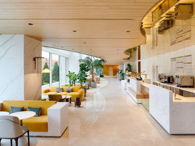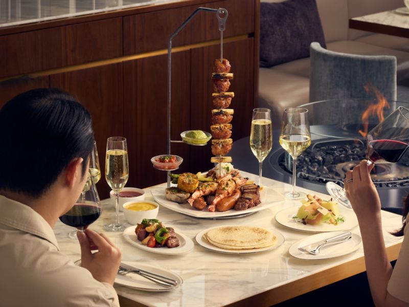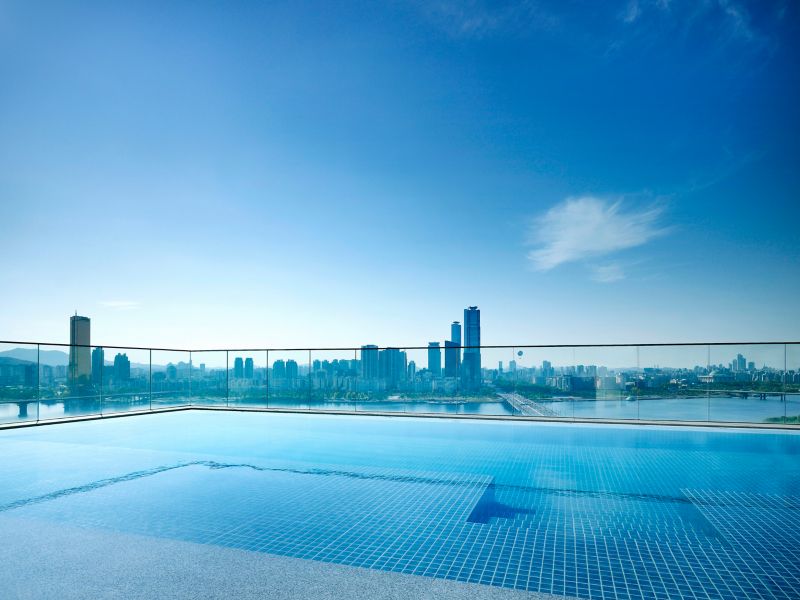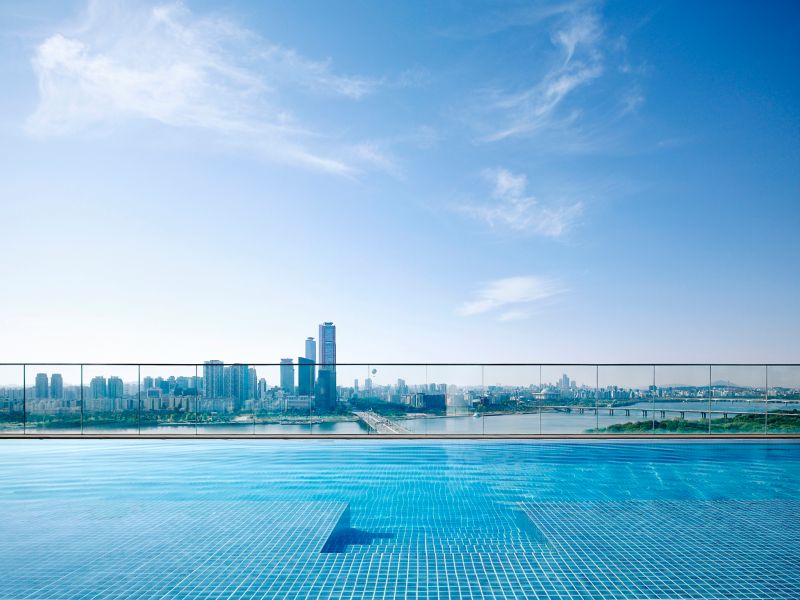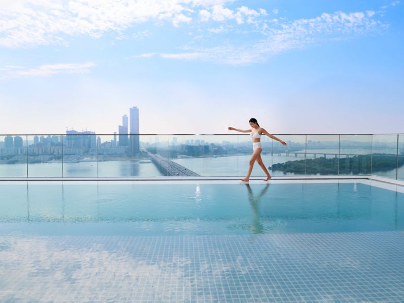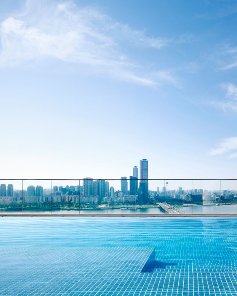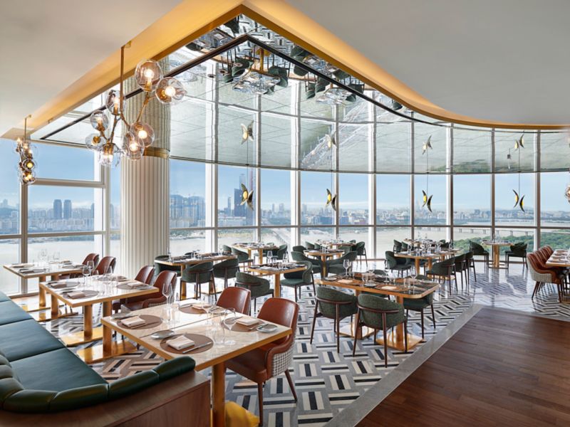 Quando o céu de Seul brilha em tons de laranja, as delícias ao pôr do sol começam em nosso Lounge & Deck.