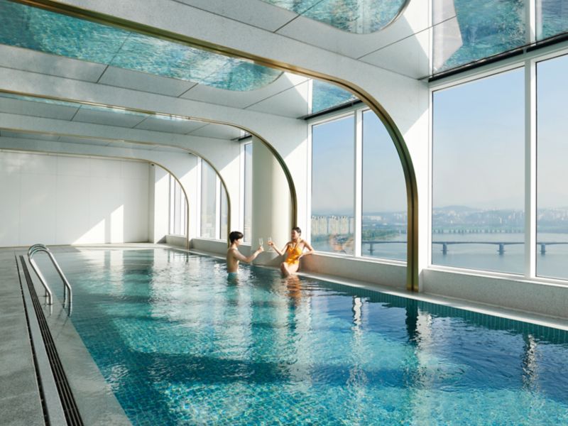 Crianças menores de 12 anos podem usar a piscina coberta acompanhadas de um adulto. A piscina de borda infinita é para hóspedes com 19 anos ou mais após as 18h e está fechada durante o inverno.